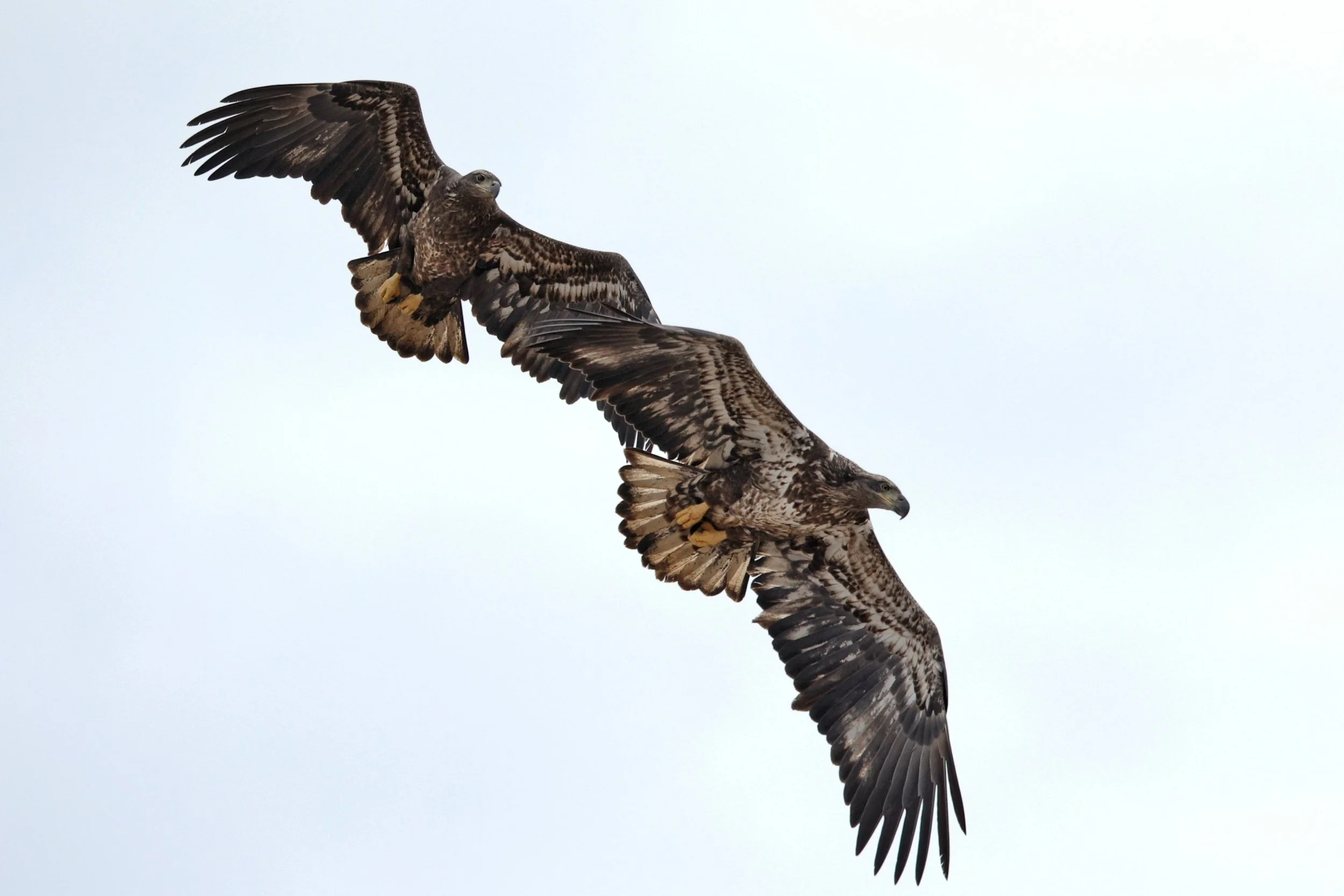 Spotting an adult eagle is quite easy for most with their signature snowy white heads but this takes roughly 5 years before they reach this stage. Juveniles on the other hand start out quite the opposite and slowly transition to their definitive plumage with their white heads.