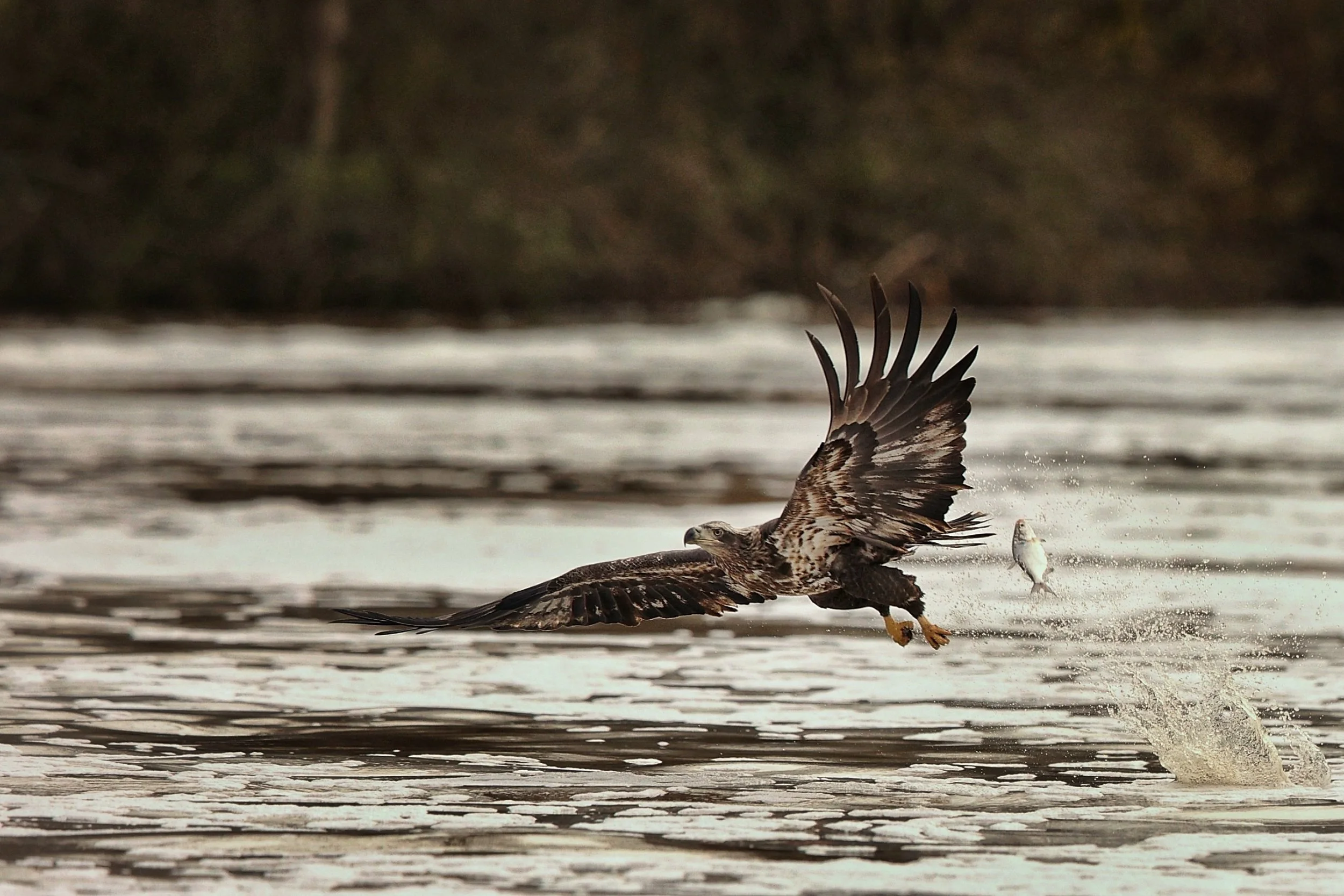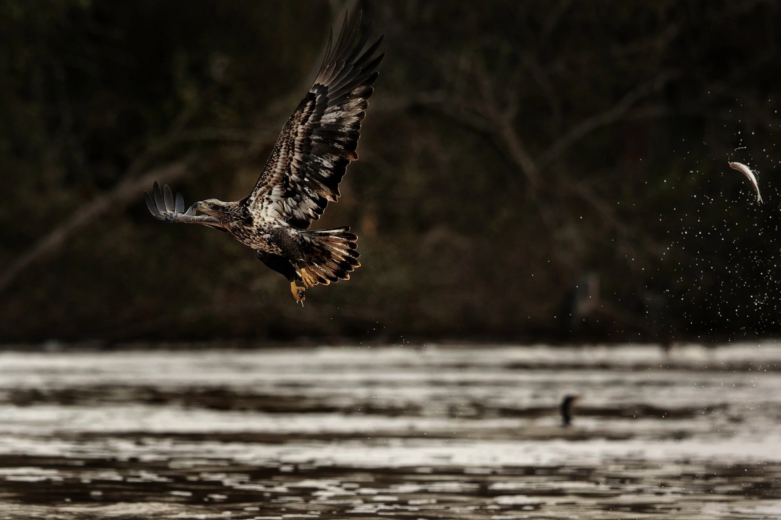 Based on the below image showing the different stages, the two immature eagles I captured are roughly 2.5 years old; and very much still perfecting their skills to secure a catch from the river.